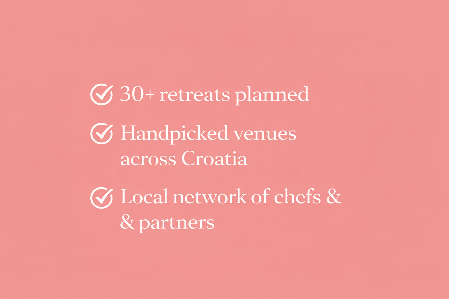 We match you with the right venue, handle coordination, and build a retreat flow that actually works — so everything feels calm, structured, and effortless.